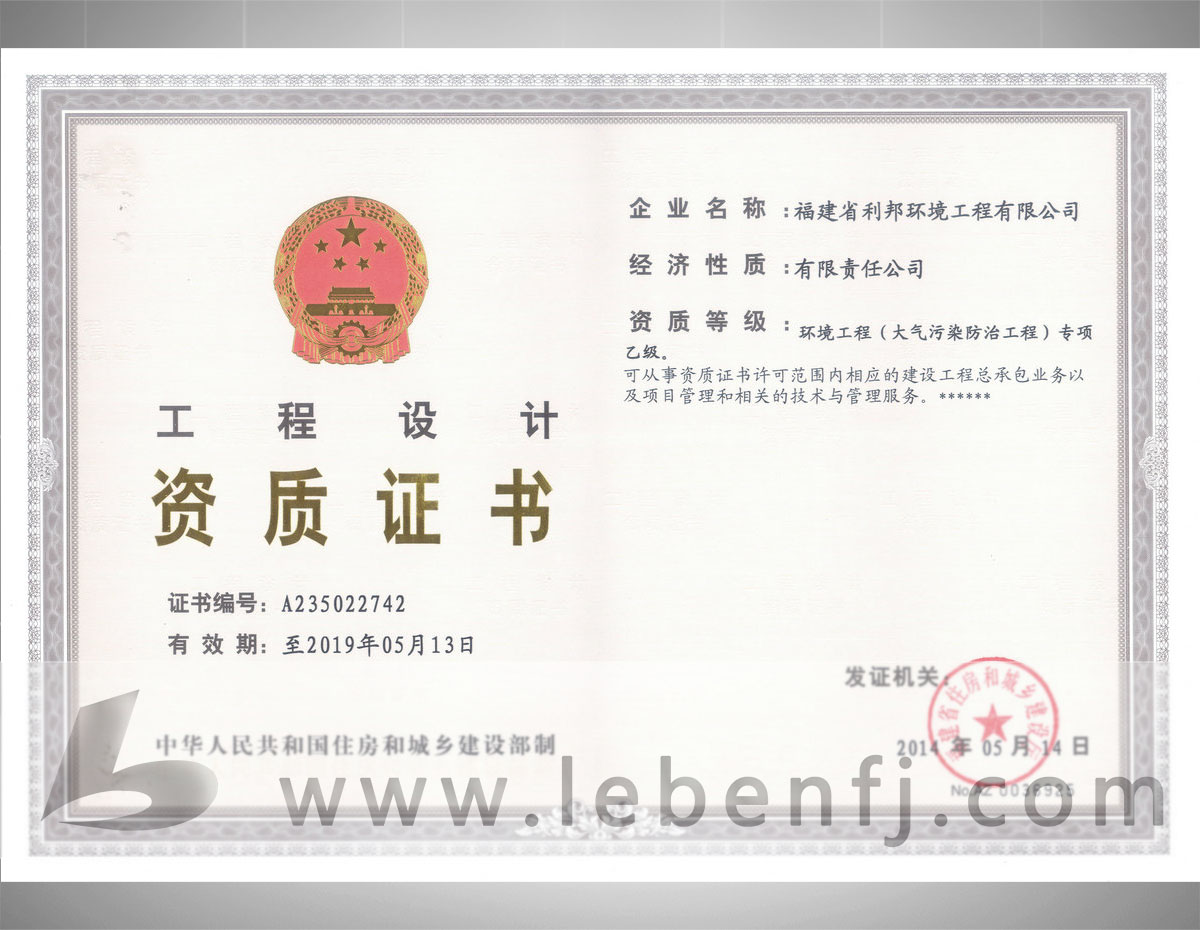 • 環境工程設計專項資質(乙級)